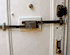 Here we have a cross bar police lock, a mortise lock and one of the best locks ever made and one of my favorites, a Medeco D-10 series deadlock (unfortunately no longer made). I'd hate to be the locksmith called on a late night lockout for this door!